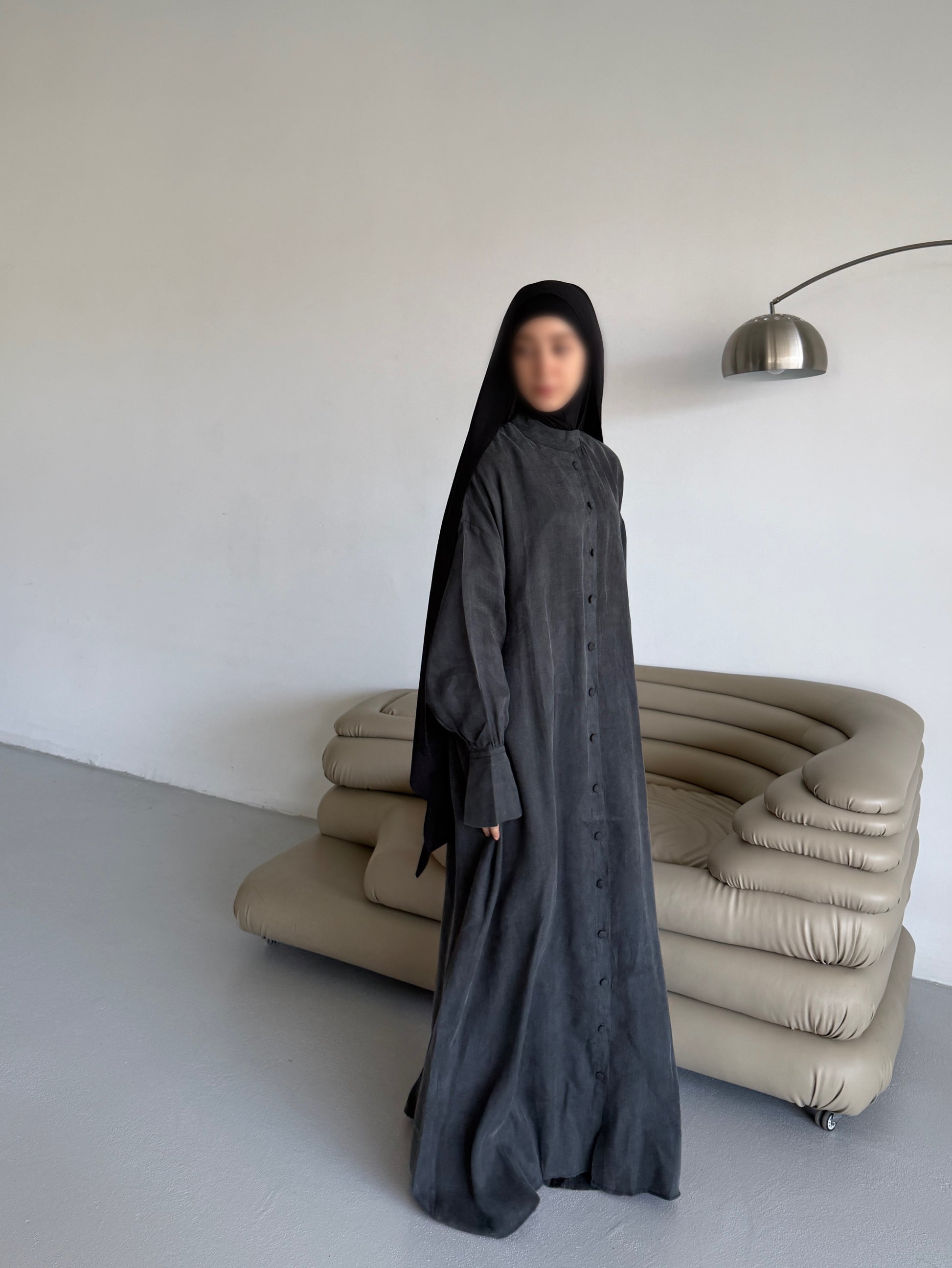 Düğmeli İpek kupra ferace